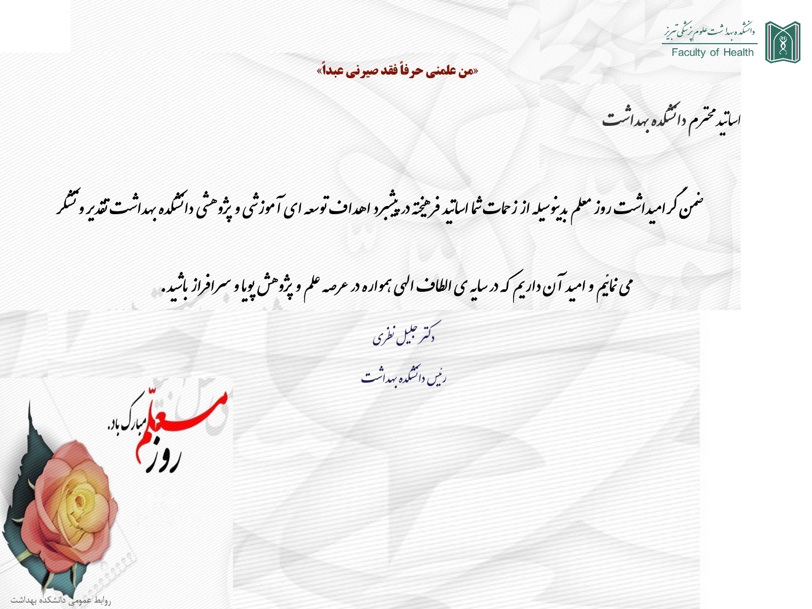 پیام تبریک رئیس دانشکده بهداشت به مناسبت روز معلم